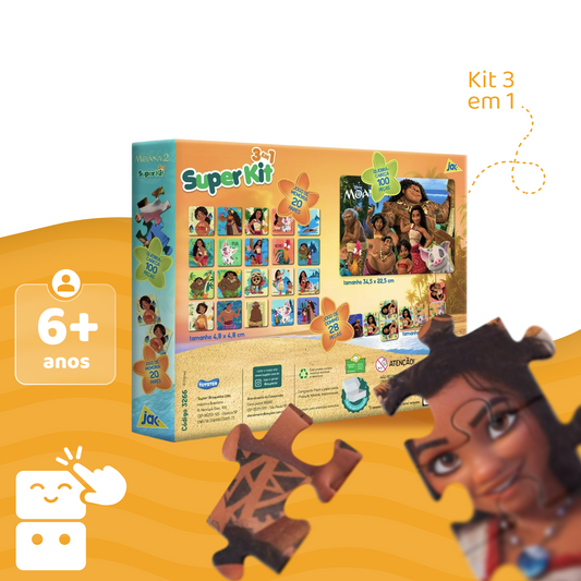 Moana 2 - Kit 3 em 1 - Quebra Cabeça + Jogo da Memória + Dominó