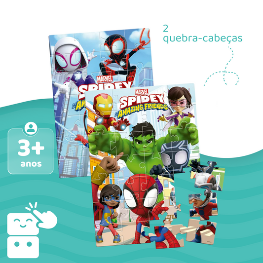 Kit - Quebra Cabeça Marvel Spidey (28 peças) + Avengers (28 peças)