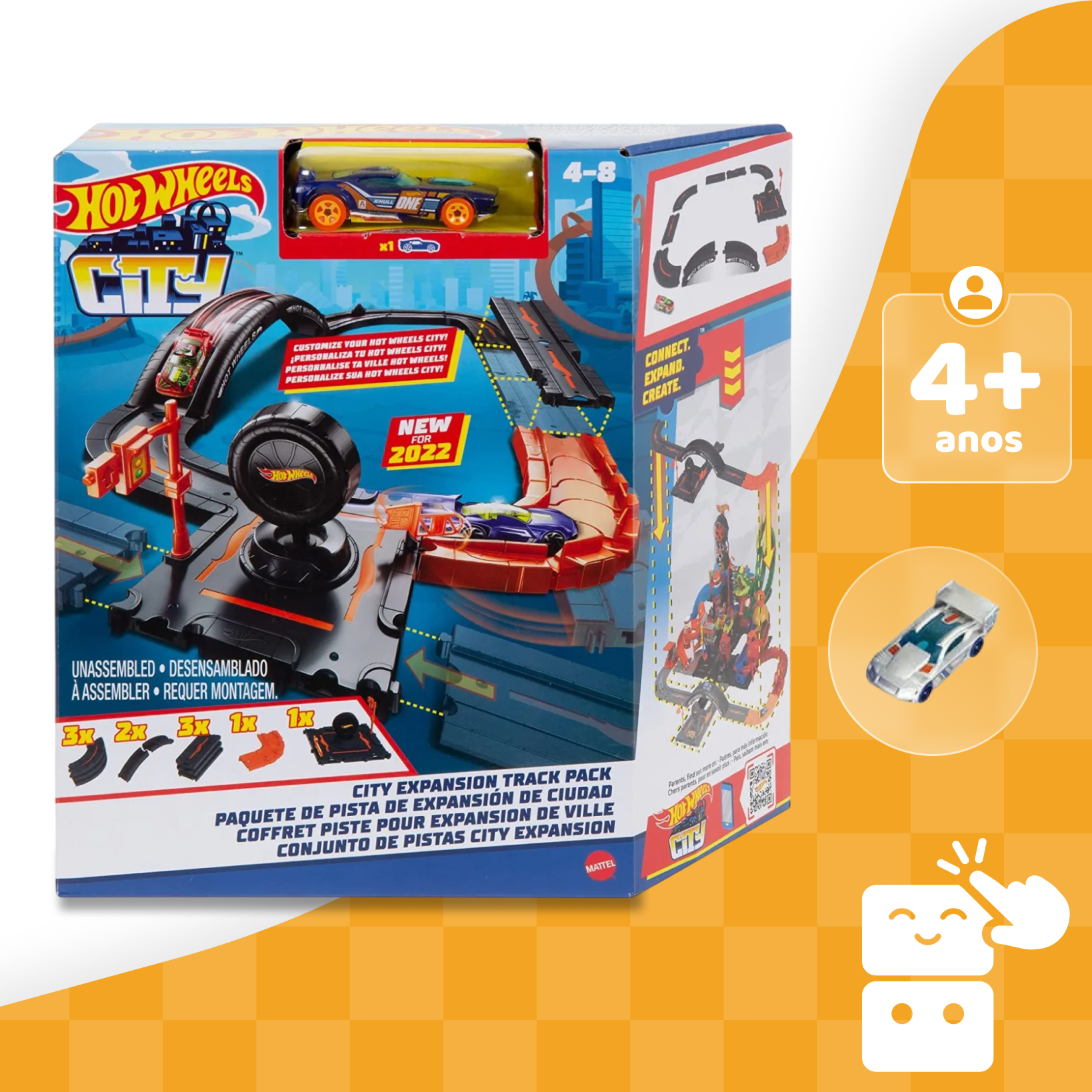 Com peças versáteis, você pode montar novas rotas, ampliar suas pistas favoritas e dar ainda mais emoção às suas corridas com Hot Wheels.