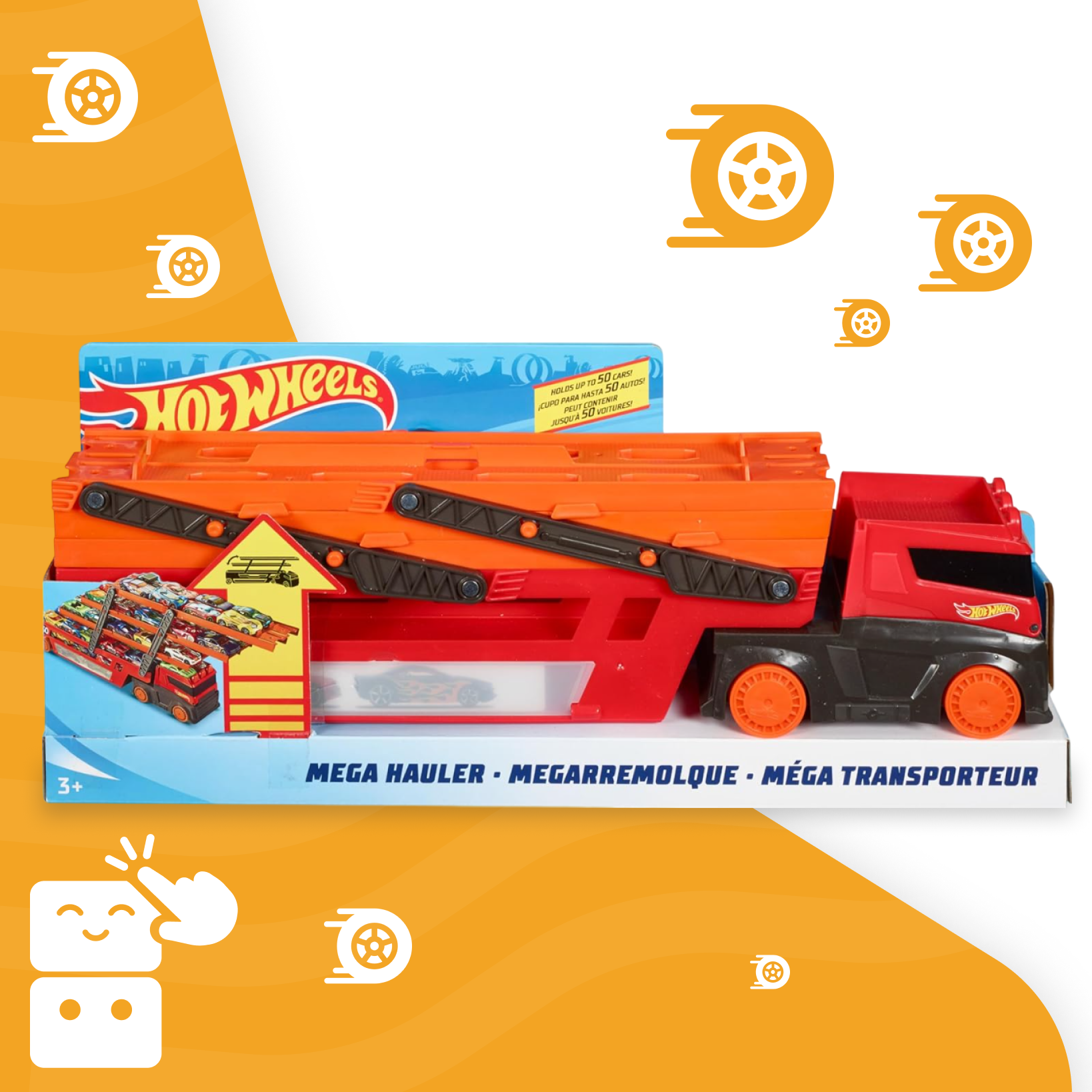 Prepare-se para acelerar a diversão com o Mega Trailer Hot Wheels, um veículo impressionante que carrega até 50 carrinhos e se transforma em uma pista cheia de ação! Ideal para quem ama adrenalina, organização e velocidade sobre rodas!