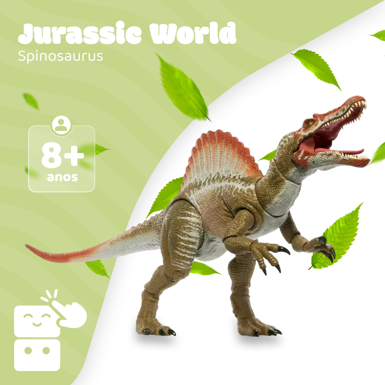 Com dimensões robustas e visual feroz, o Spinosaurus é perfeito para recriar cenas do filme ou imaginar novas histórias com dinossauros em conflito. Um brinquedo que chama atenção logo de cara!