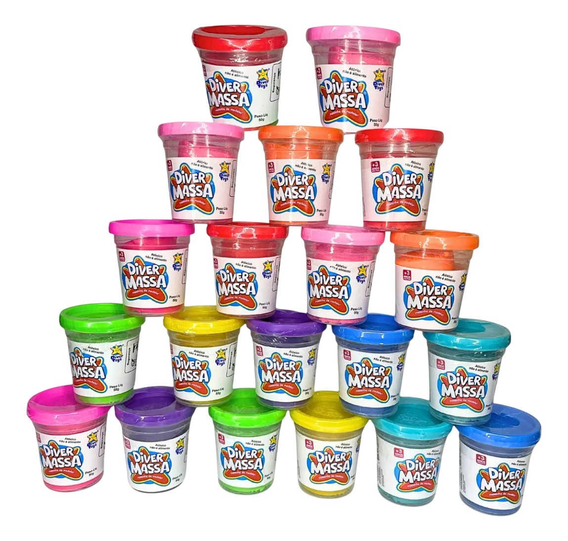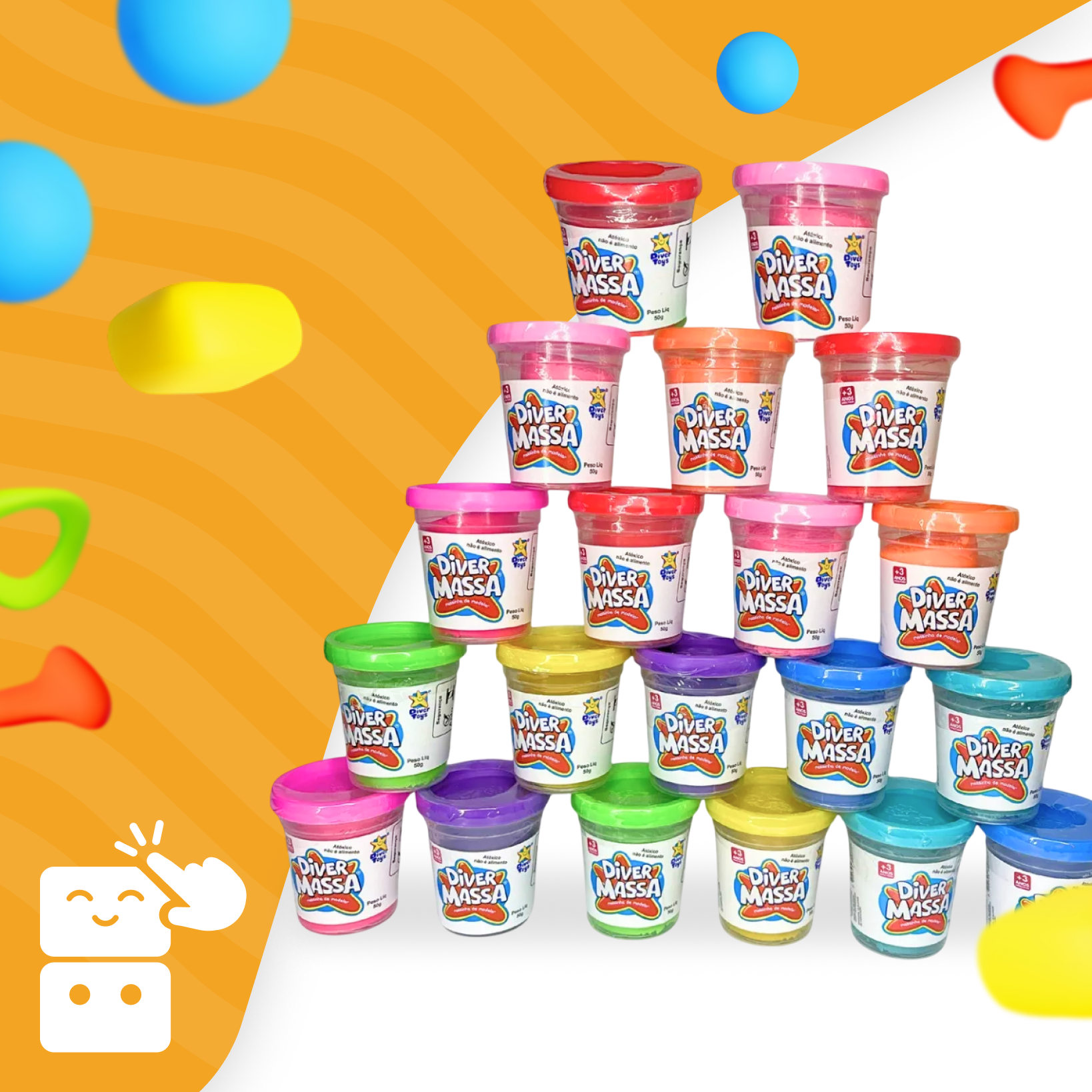Se você quer garantir diversão, aprendizado e muita imaginação para os pequenos, o Kit com 20 potes de massinha da Diver Toys é a escolha perfeita. Um combo completo com massinhas coloridas e moldes sortidos, ideal para transformar qualquer momento em um mundo de possibilidades!