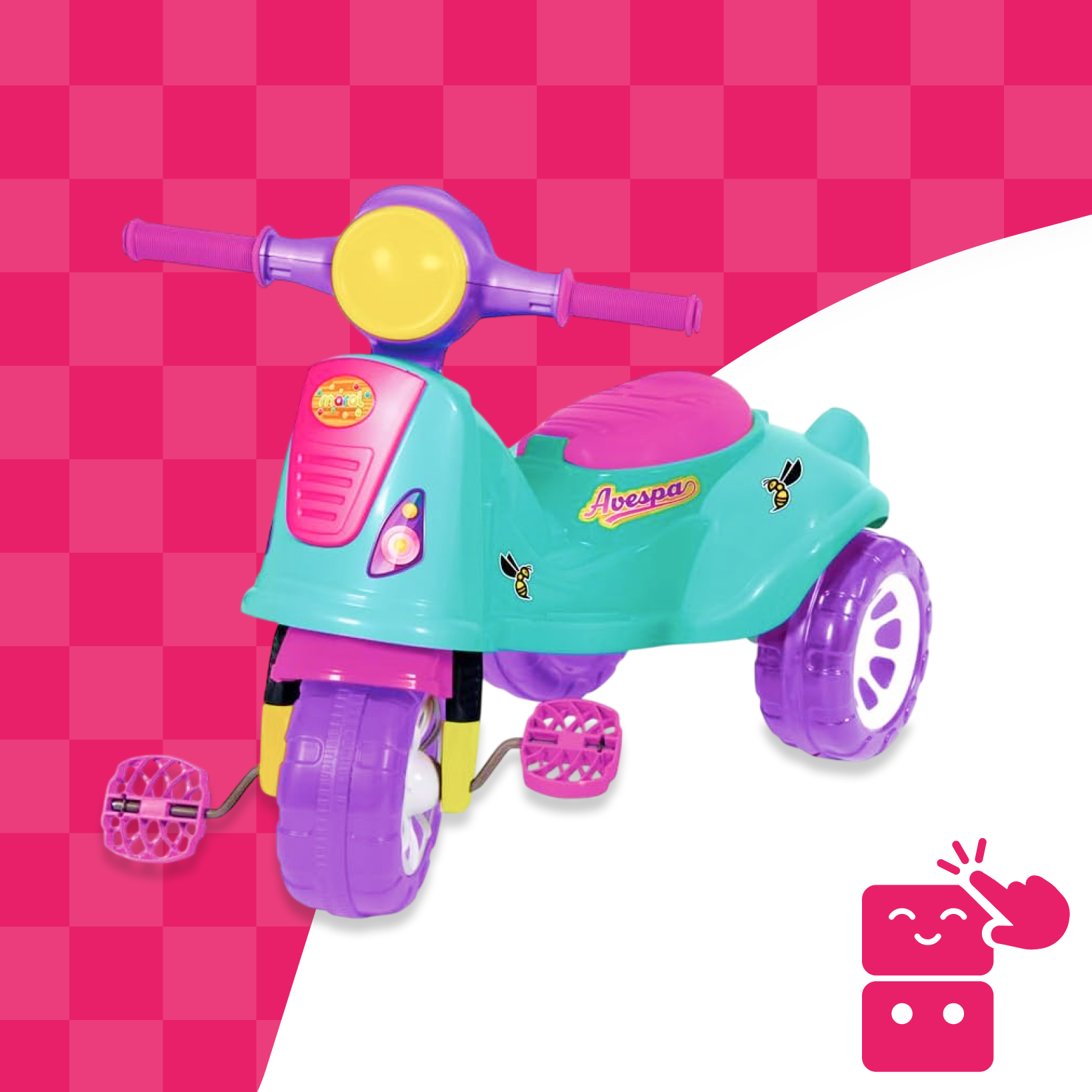 Com linhas suaves, cor rosa vibrante e acabamento elegante, o Avespa é muito mais que um triciclo: é um verdadeiro charme sobre rodas! Ideal para meninas cheias de personalidade que amam se destacar.